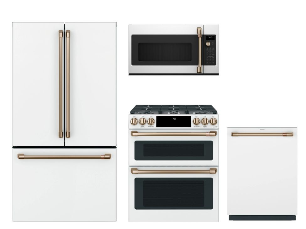 Café™ 4 Piece Stainless Steel Kitchen Package with a french door refrigerator, slide in double oven gas range, built in dishwasher and over the range microwaveRead More