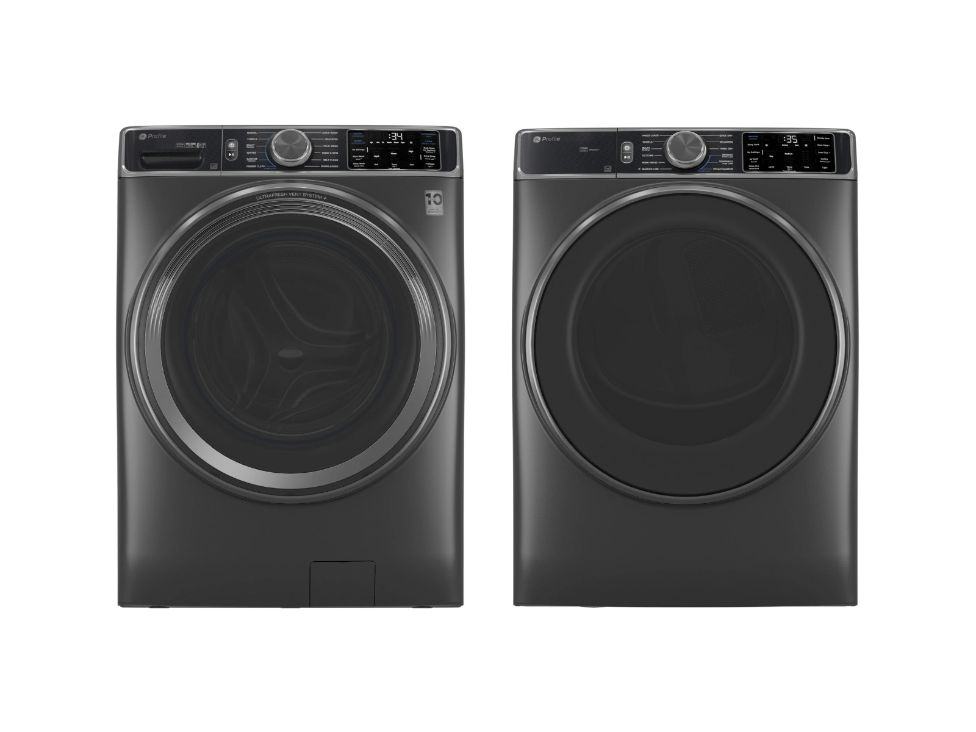 GE Profile™ Carbon Graphite Laundry Pair with a 5.5 cu. ft. capacity top load washer and a 7.8 cu. ft. capacity front load electric dryerRead More